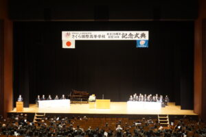また、式典では漫画家ちばてつや先生と荒井理事長による共同作詞の新しい校歌を、本校と東京校の代表生徒が披露しました。