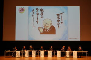 「平和の意義」についてご講演をいただき、その後のシンポジウムでは無言館の館主である窪島誠一郎さんを始めとする関係者と、
