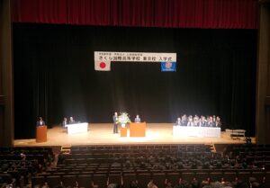 緊張の中、たくさんの人の前で、高校生活の目標について立派に宣誓しました。